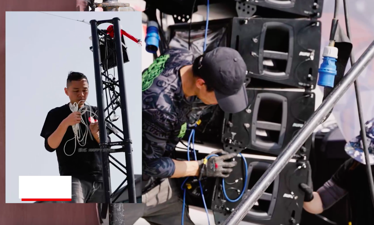 懸吊式陣列喇叭(Line Array Speakers)以強化聲音覆蓋範圍