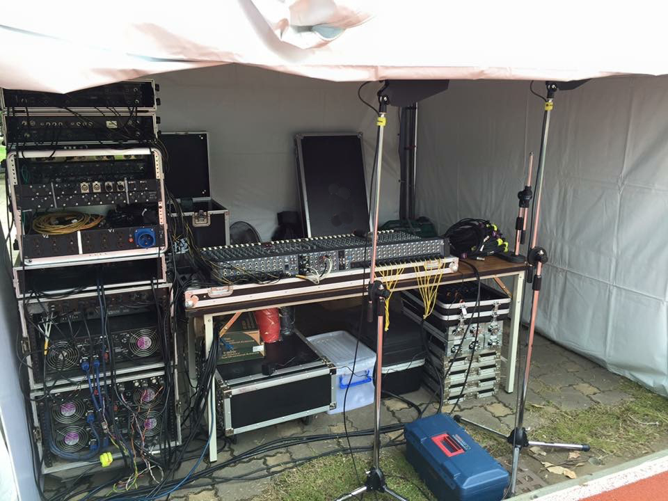 混音器、功率擴大機、麥克風監聽喇叭、外場主喇叭